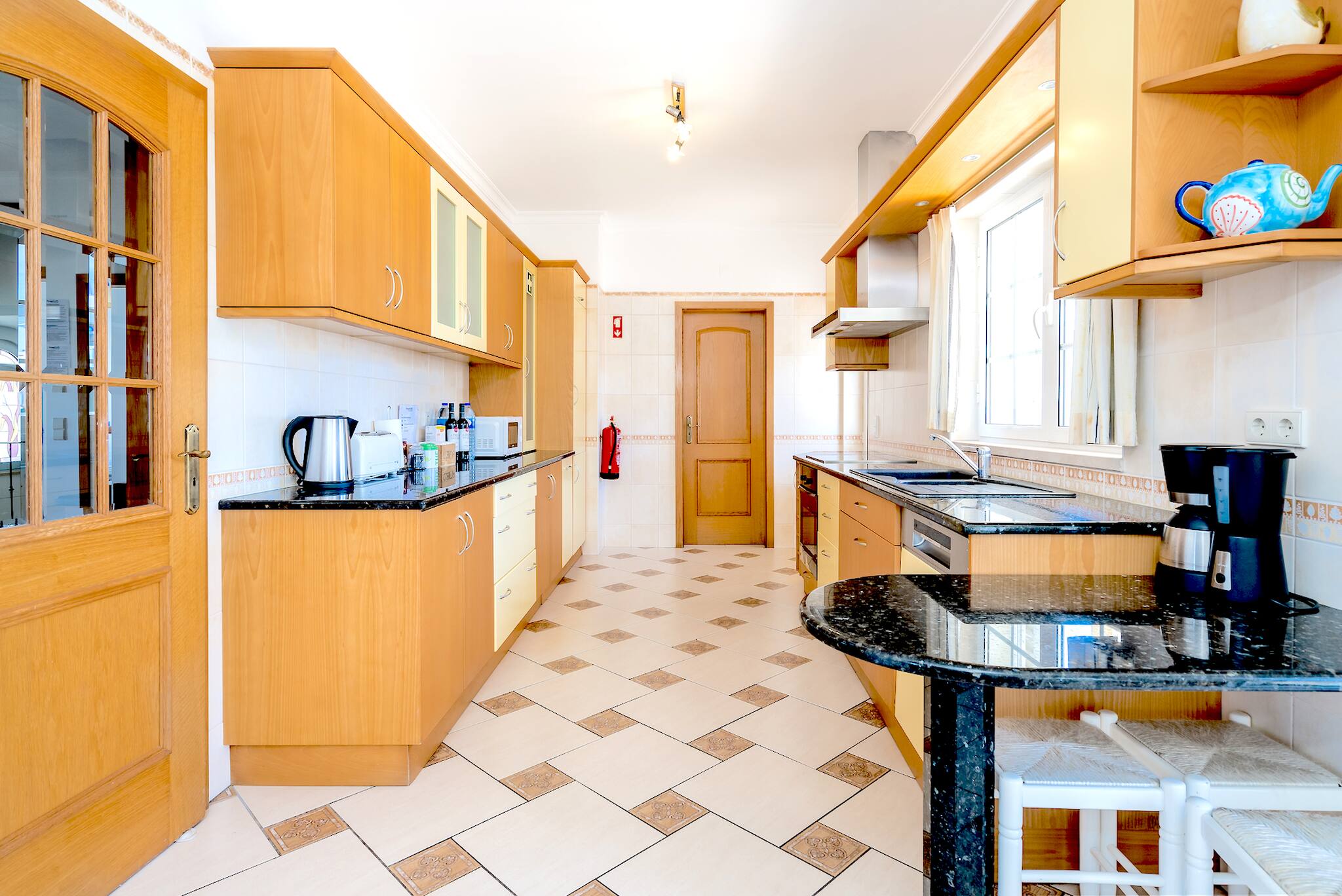 La cuisine indépendante, à induction, est équipée avec réfrigérateur, micro-ondes, four, congélateur, lave-vaisselle, vaisselle/couverts, ustensiles/cuisine, cafetière, grille pain, bouilloire et cuisinière.